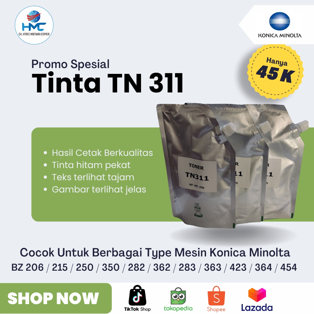 Toner TN311 adalah toner original yang dirancang khusus untuk mesin fotokopi Konica Minolta guna memastikan hasil cetakan yang tajam, bersih, dan konsisten. Toner ini digunakan pada beberapa seri mesin fotokopi Konica Minolta yang biasa digunakan di lingkungan kantor maupun usaha fotokopi.